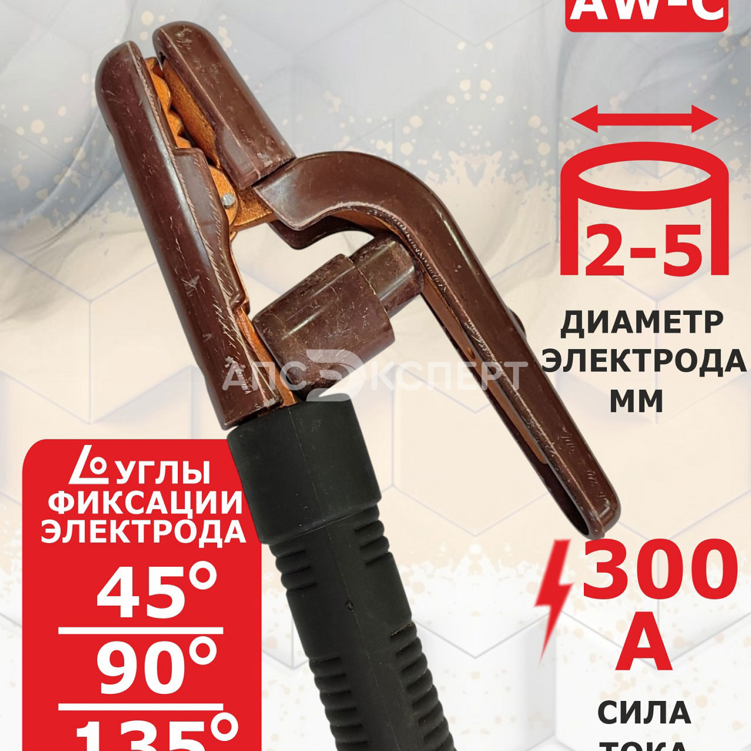 Сварочный электрододержатель на 300А — это профессиональный инструмент для ручной дуговой сварки (ММА), предназначенный для надежной фиксации электродов диаметром 2.0-5.0 мм и подвода сварочного тока силой до 300 А. Изготовлен из высококачественной токопроводящей медной композитной стали, что обеспечивает минимальное падение напряжения и эффективное теплорассеивание.